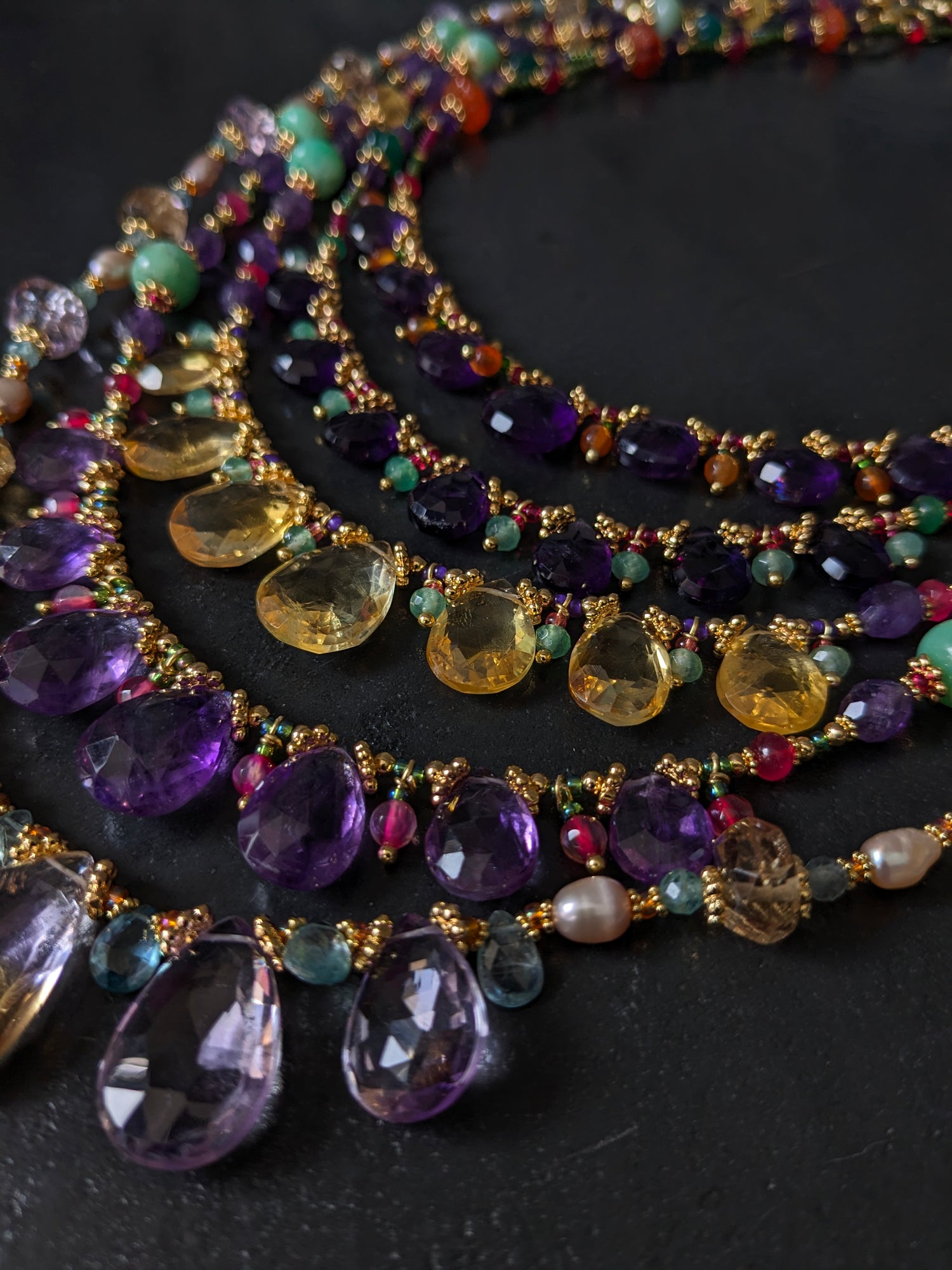 Des chapelets précieux noués à la main, dotés de pierres fines aux couleurs enchanteresses. Chaque pièce de ces véritables rosaires est unique, combinant perles d'eau douce et pierres fines pour un style inégalé. Ces créations chatoyantes apportent une touche de spiritualité et de raffinement à votre quotidien. Laissez-vous séduire par l'élégance et l'authenticité de ces bijoux exceptionnels.