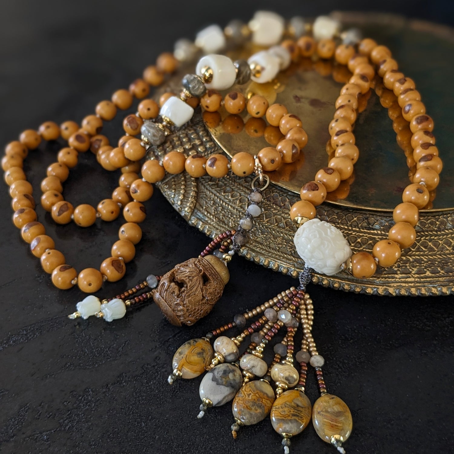 Découvrez la collection Bodhi Bliss, une gamme de bijoux boho-chic mêlant tradition et style contemporain. Chaque pièce, nouée à la main, est composée de perles de prière bouddhiste et de pierres naturelles, créant des bracelets unisexes et ajustables, ainsi que des malas parfaits pour être portés au quotidien. Chaque bijou est unique, reflétant le savoir-faire artisanal et une connexion spirituelle profonde. Plongez dans l'harmonie et l'élégance avec Bodhi Bliss, et ressentez la sérénité à chaque instant.