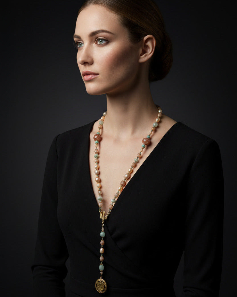 Des chapelets précieux noués à la main, dotés de pierres fines aux couleurs enchanteresses. Chaque pièce de ces véritables rosaires est unique, combinant perles d'eau douce et pierres fines pour un style inégalé. Ces créations chatoyantes apportent une touche de spiritualité et de raffinement à votre quotidien. Laissez-vous séduire par l'élégance et l'authenticité de ces bijoux exceptionnels.