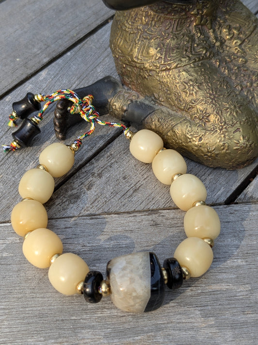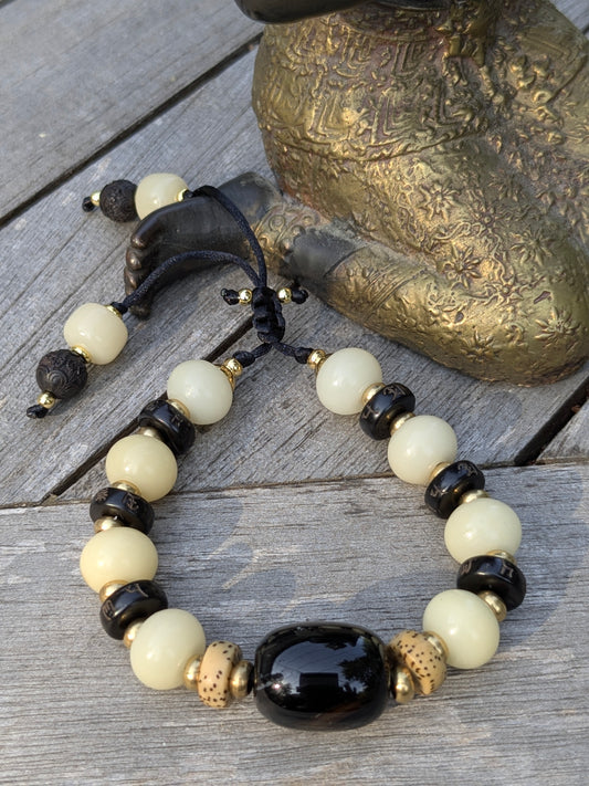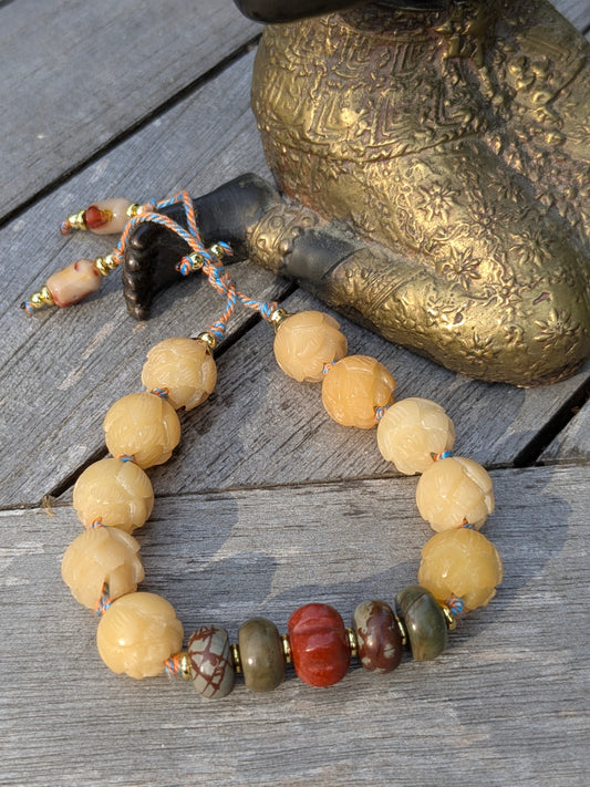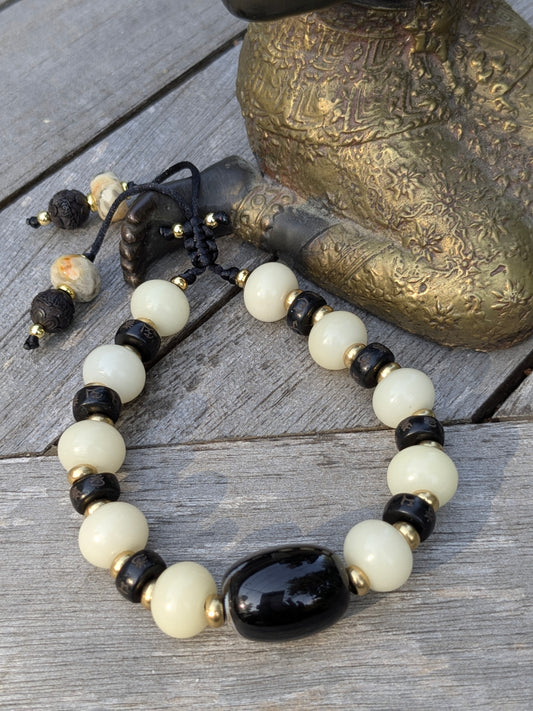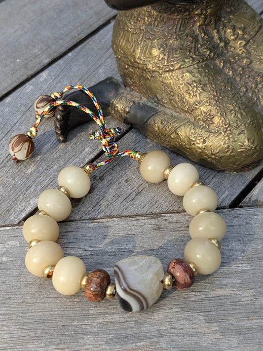 Plongez dans une expérience spirituelle avec ma collection de bracelets en perles de prière bouddhiste végétales et pierres naturelles.