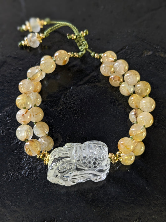 Bracelet Pixiu Quartz à Rutiles Dorés