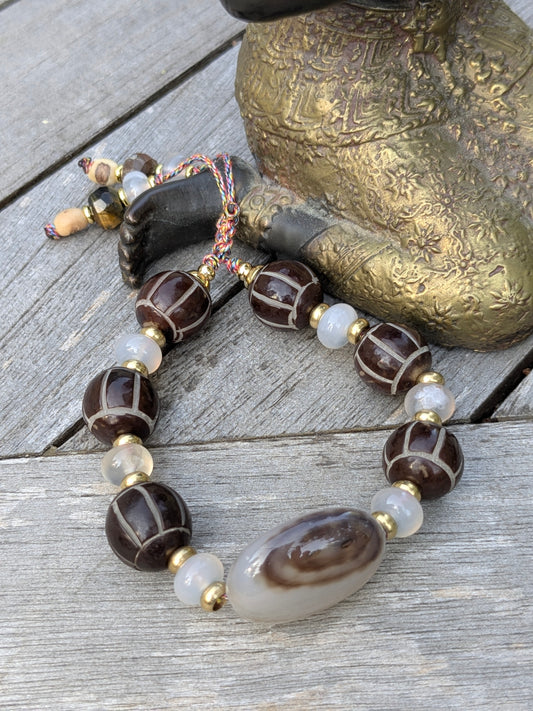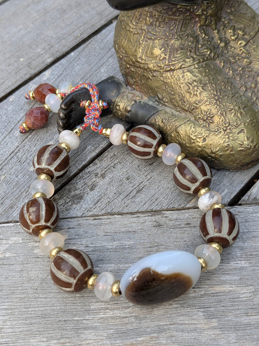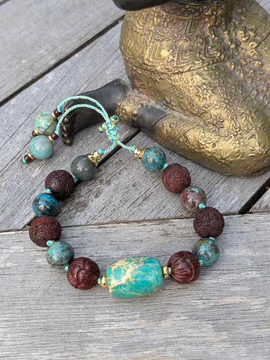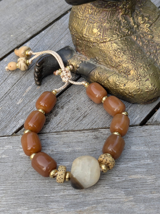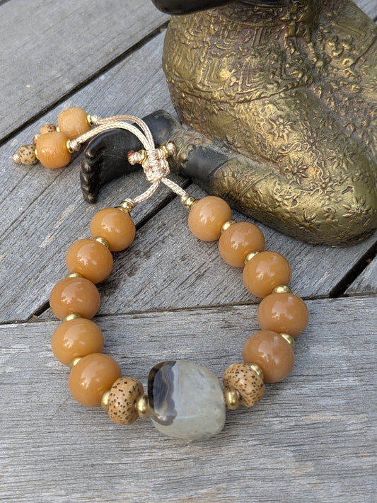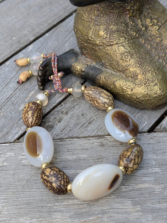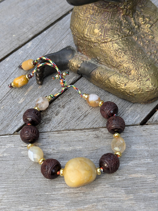 Plongez dans une expérience spirituelle avec ma collection de bracelets en perles de prière bouddhiste végétales et pierres naturelles.