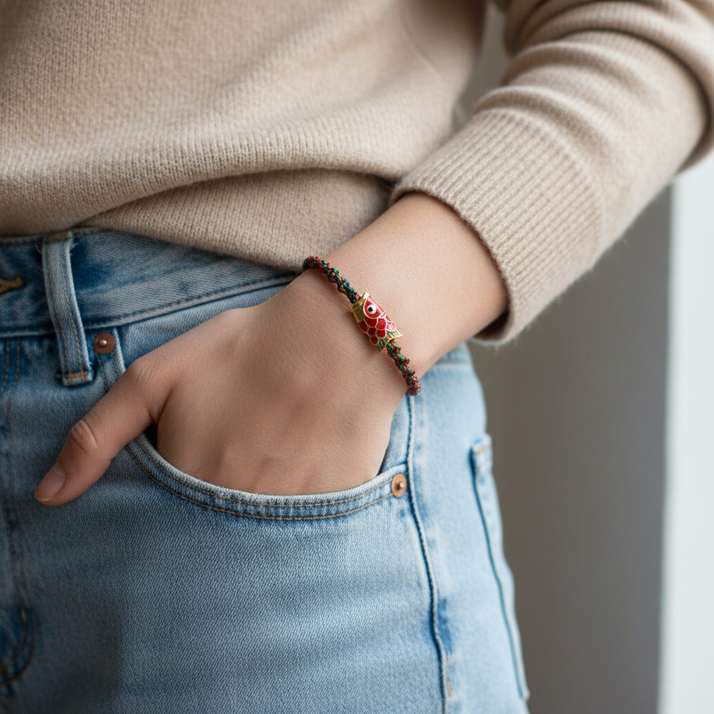 Avec son macramé subtil et sa perle plaqué or émaillé, le bracelet ANIMA offre une allure précieuse et intemporelle. Ajustable, il sublime la plupart des poignets jusqu’à 20 cm.