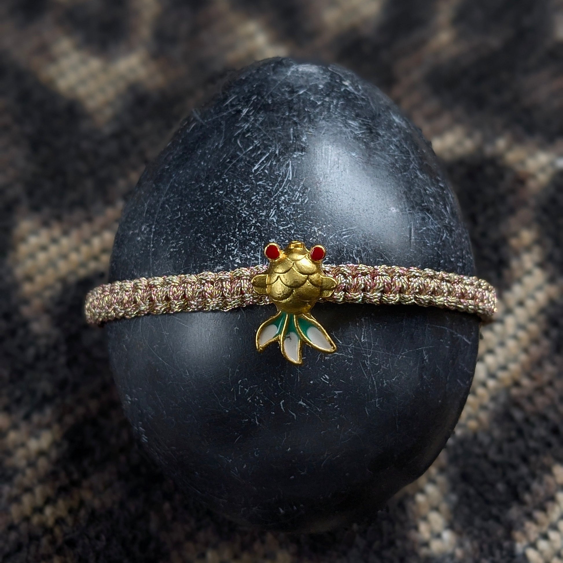 Avec son macramé subtil et sa perle plaqué or émaillé, le bracelet ANIMA offre une allure précieuse et intemporelle. Ajustable, il sublime la plupart des poignets jusqu’à 20 cm.