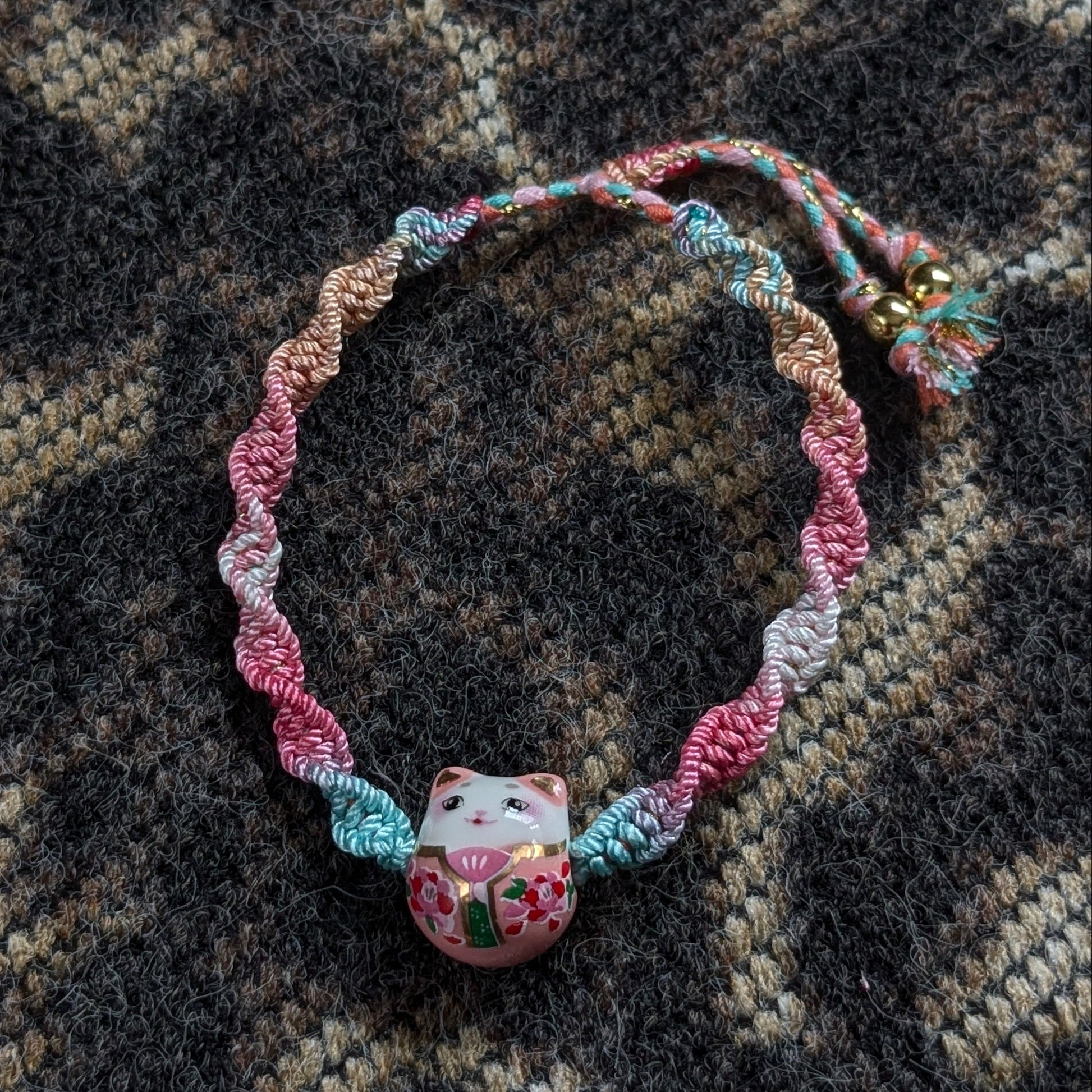 Avec son macramé subtil et sa perle en porcelaine peinte, le bracelet ANIMA offre une allure précieuse et intemporelle. Ajustable, il sublime la plupart des poignets jusqu’à 20 cm.