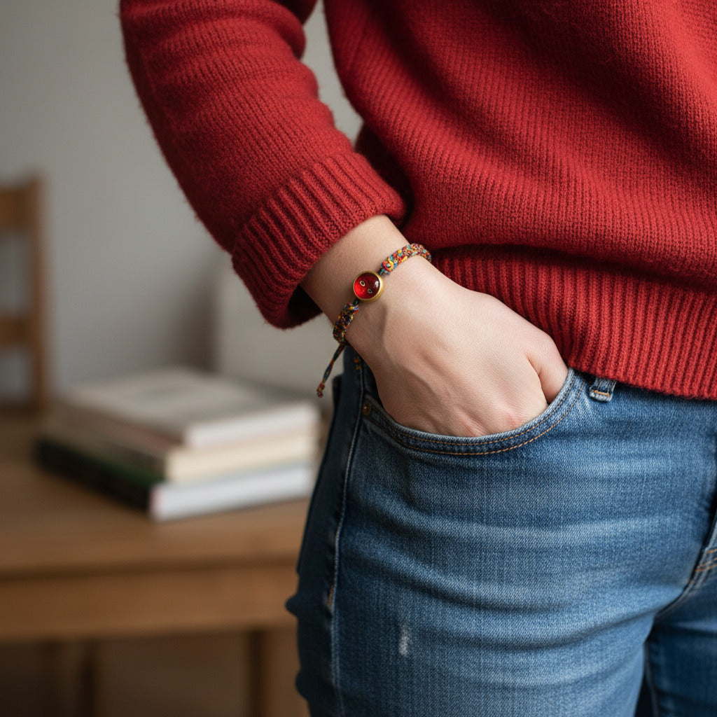 Avec son macramé subtil et sa perle cabochon, le bracelet ANIMA offre une allure précieuse et intemporelle. Ajustable, il sublime la plupart des poignets jusqu’à 20 cm.