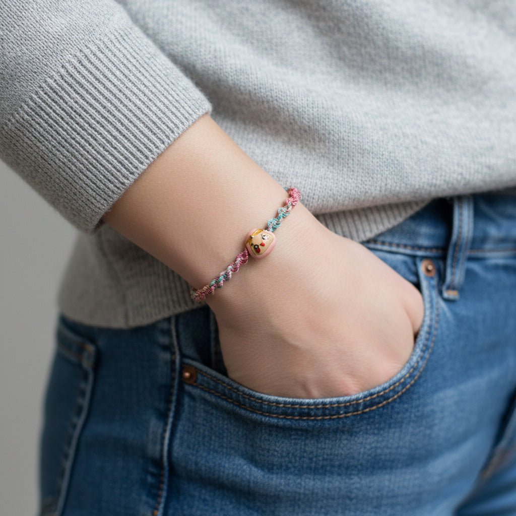 Avec son macramé subtil et sa perle plaqué or émaillé, le bracelet ANIMA offre une allure précieuse et intemporelle. Ajustable, il sublime la plupart des poignets jusqu’à 20 cm.