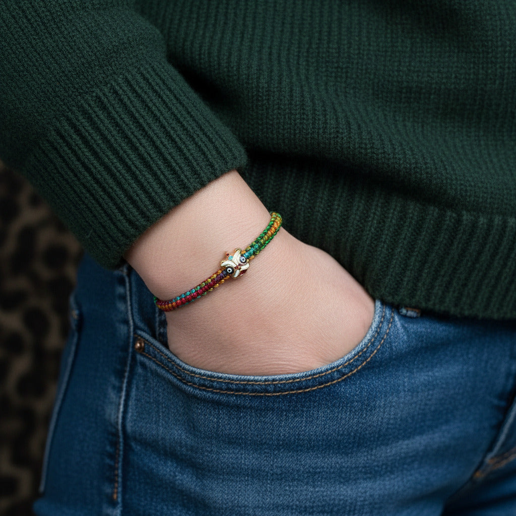 Avec son macramé subtil et sa perle plaqué or émaillé, le bracelet ANIMA offre une allure précieuse et intemporelle. Ajustable, il sublime la plupart des poignets jusqu’à 20 cm.