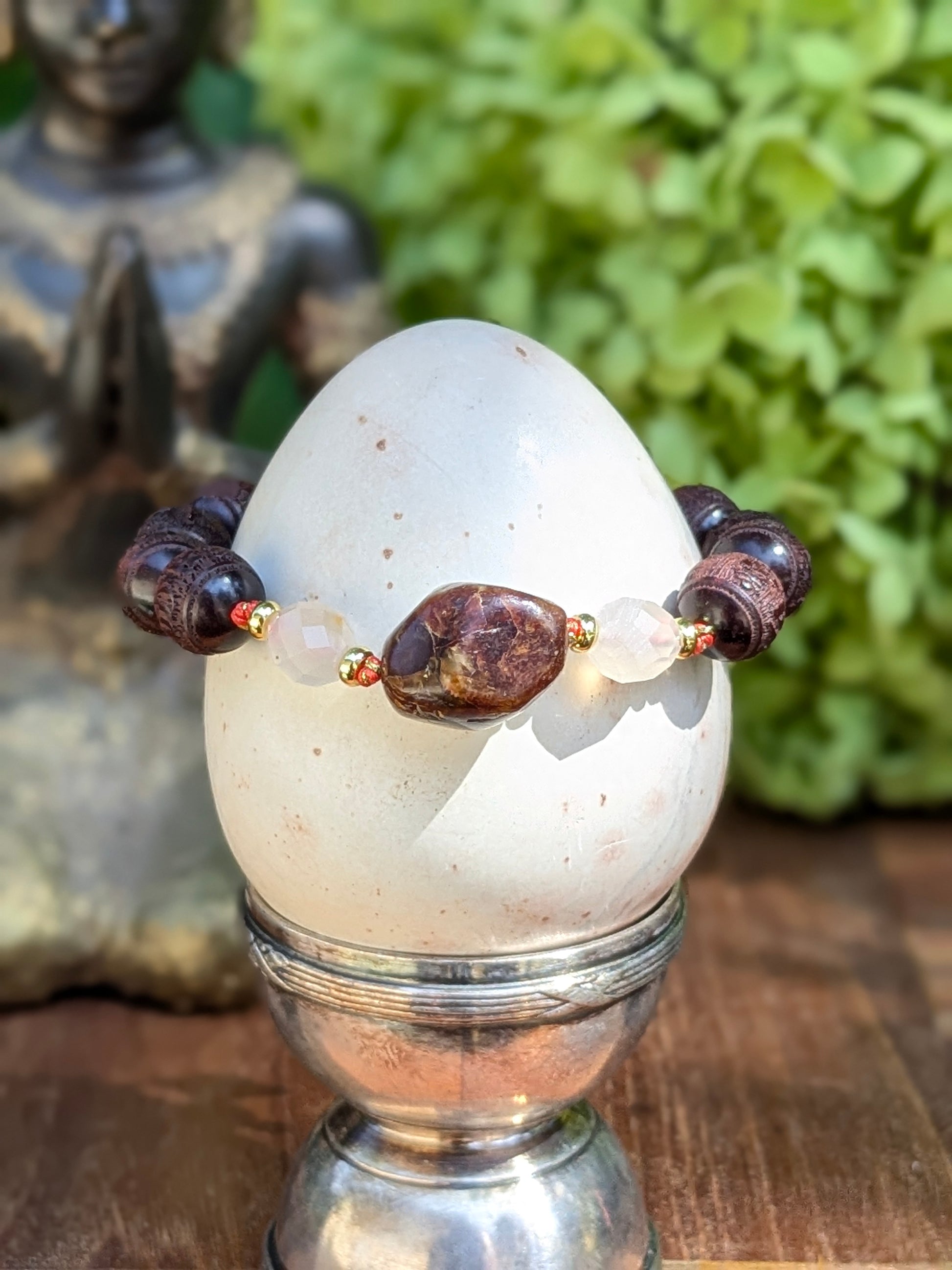 Plongez dans l'univers de mes créations, où chaque bracelet bouddhiste naît d'une alchimie rare entre héritage ancestral et sensibilité actuelle. Conçus avec intention dans mon atelier français, ces pièces uniques marient la sagesse des graines de Bodhi - symboles millénaires d'éveil - à l'énergie vibrante de pierres naturelles soigneusement choisies.