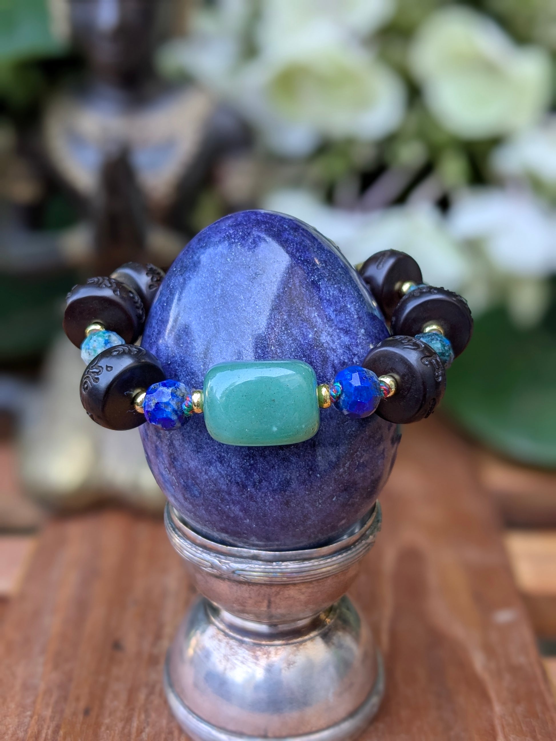 Pierres : Aventurine verte, jaspe sésame, lapis-lazuli