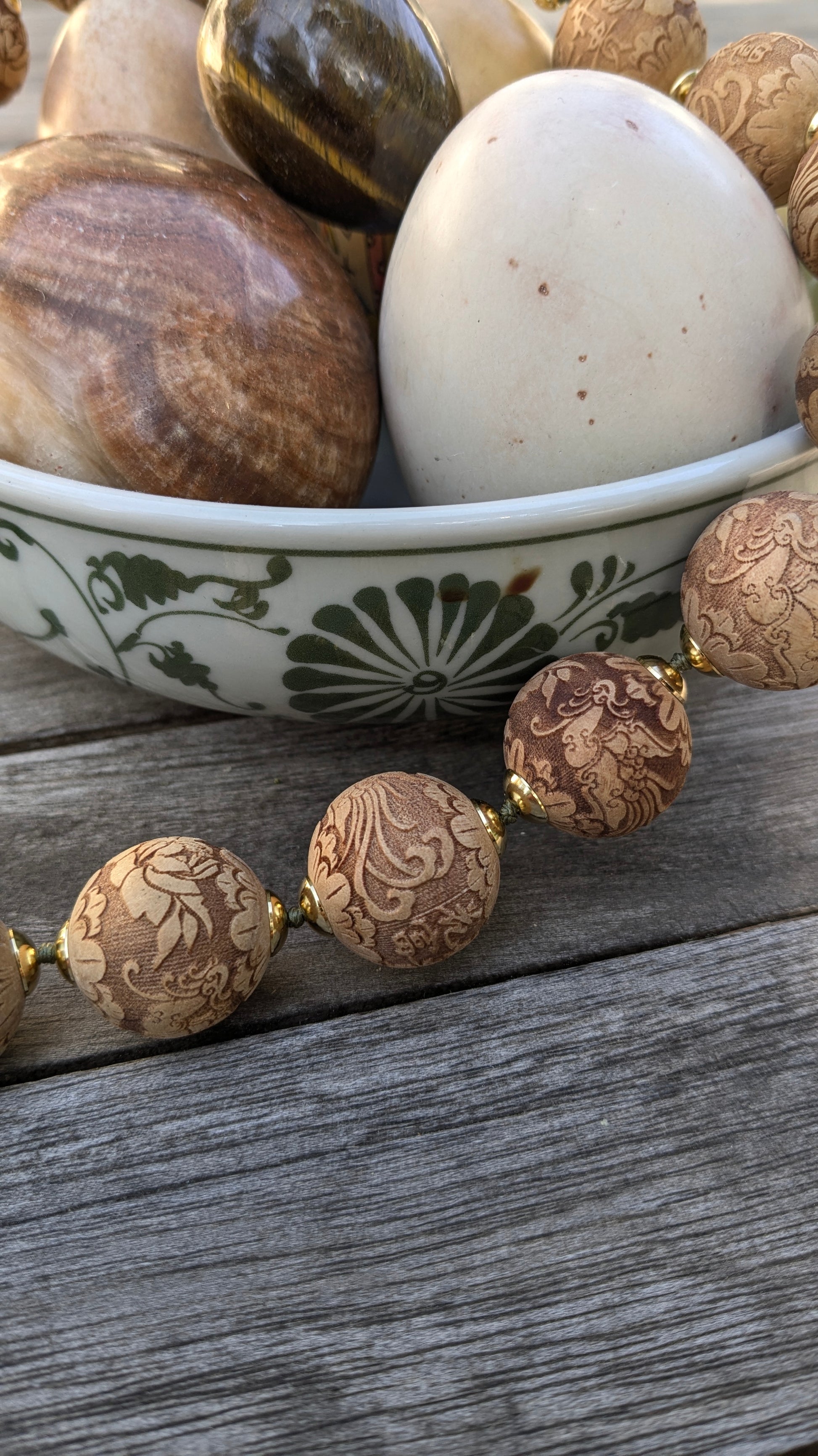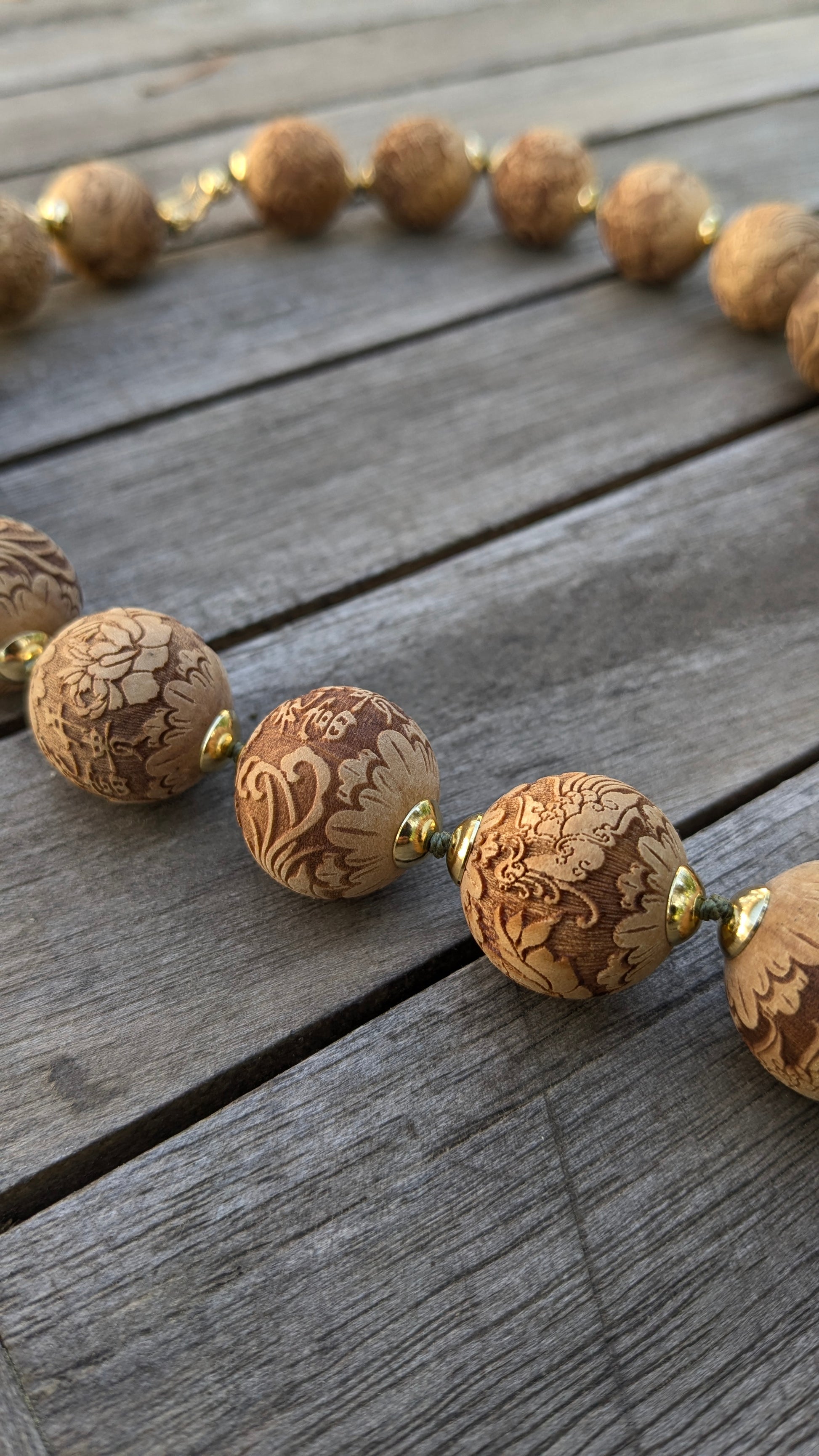 Perles bois clair ciselé 20mm