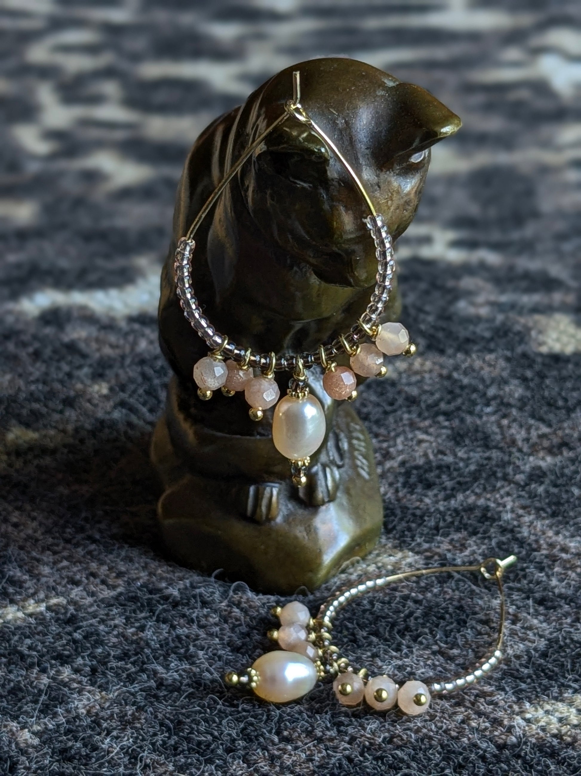 Pierres fines: Perles d'eau douce et pierre de lune pêche